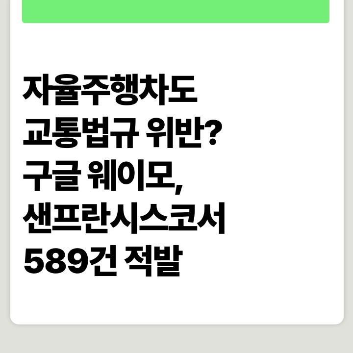 ', { cookie_domain: 'rachelchun.tistory.com', cookie_flags: 'max-age=0;domain=.tistory.com', cookie_expires: 7 * 24 * 60 * 60 // 7 days, in seconds }); 자율주행차도 교통법규 위반? 구글 웨이모, 샌프란시스코서 589건 적발