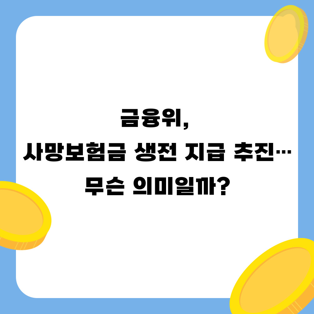 안녕하세요! 오늘은 금융권의 새로운 소식을 들고 왔습니다. 최근 금융위원회가 '사망보험금 유동화 방안'을 추진하겠다고 발표했는데요, 이는 고령층의 노후 생활 안정에 큰 영향을 미칠 수 있는 중요한 변화입니다. 과연 어떤 내용인지 자세히 알아보겠습니다.