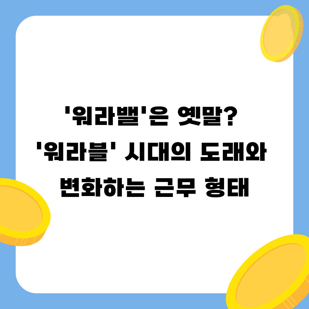하지만 기술의 발전과 팬데믹을 거치며 우리의 근무 형태는 또 한 번의 커다란 변화를 맞이하고 있습니다. 이제는 일과 삶의 경계가 허물어지고 자연스럽게 융합되는 '워라블(Work-Life Blending)'이라는 새로운 개념이 주목받고 있습니다.