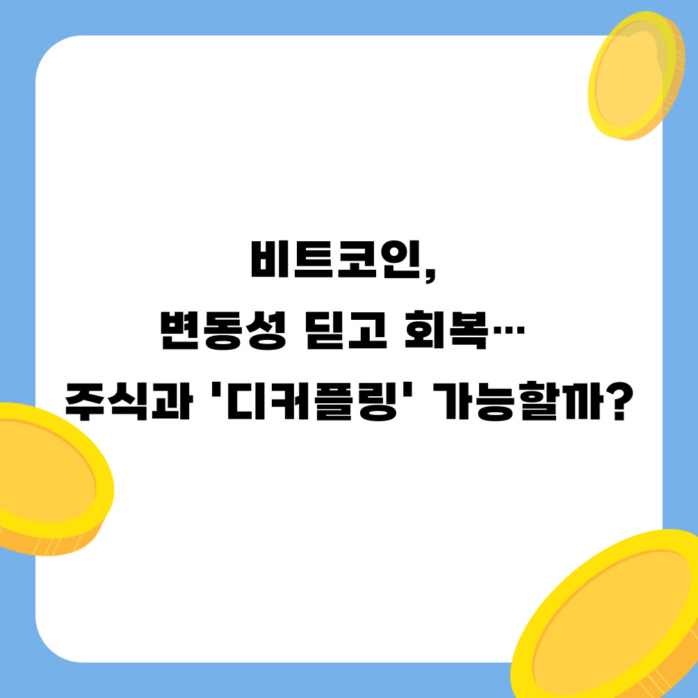 비트코인, 변동성 딛고 회복… 주식과 '디커플링' 가능할까?
