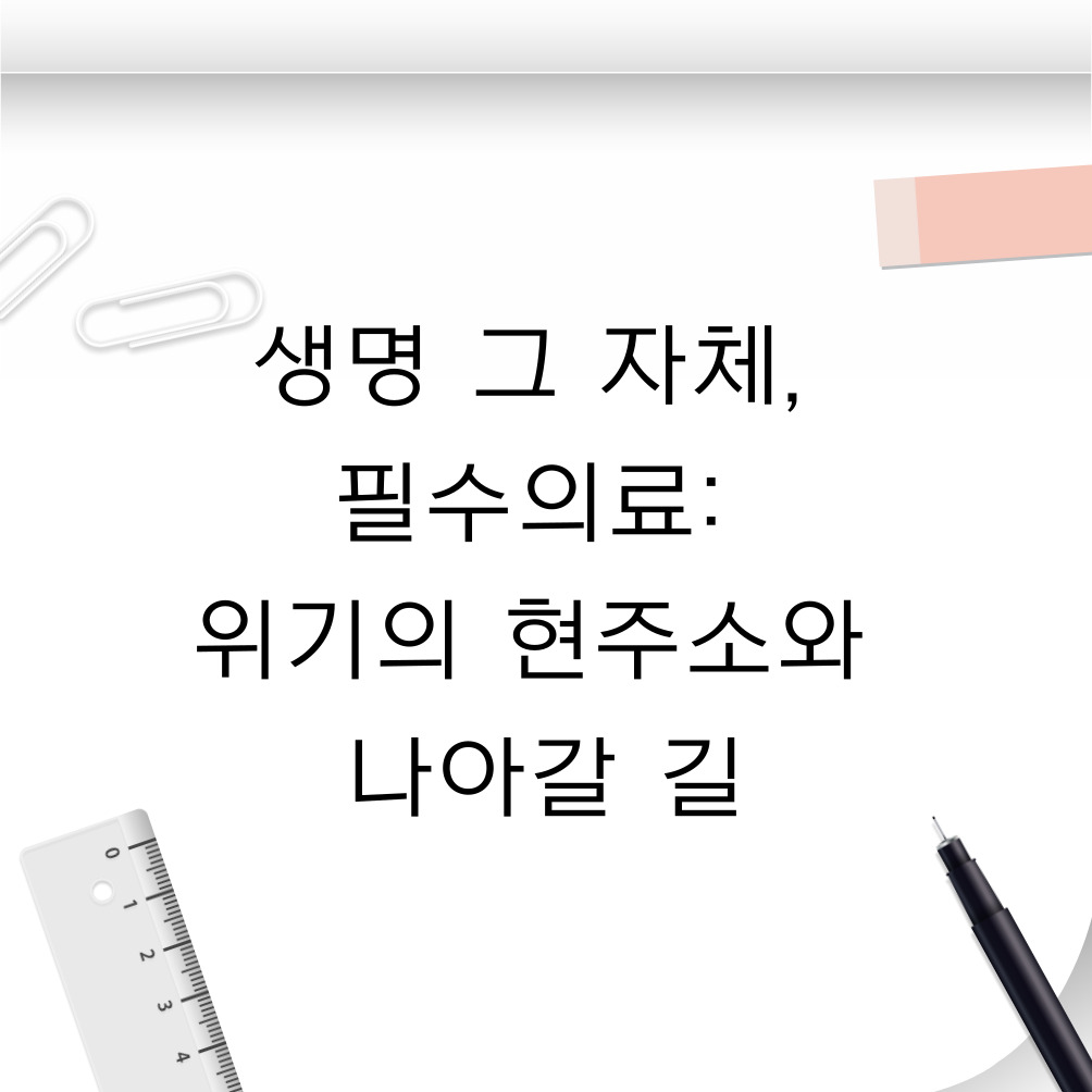 우리 사회의 건강과 안전을 지키는 최후의 보루, 필수의료. 최근 뉴스에서 '응급실 뺑뺑이', '소아과 오픈런', '지방 분만실 폐쇄' 등 필수의료 붕괴 위기를 알리는 안타까운 소식들을 자주 접하게 됩니다. 도대체 필수의료가 무엇이기에 이렇게 중요하며, 현재 어떤 어려움에 처해 있는지, 그리고 우리는 무엇을 해야 할지 자세히 알아보겠습니다.