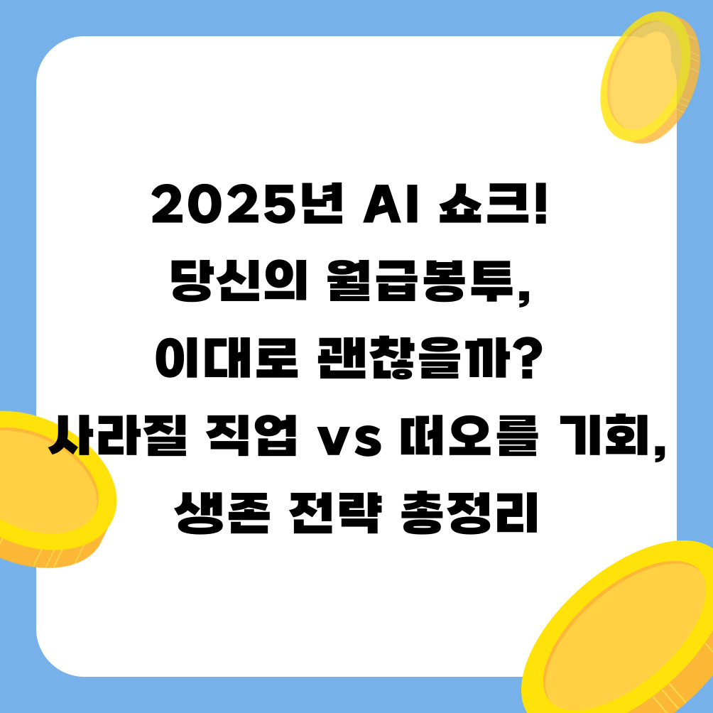 인공지능(AI) 기술이 우리 삶 깊숙이 들어오면서, 일상뿐만 아니라 직업 세계에도 거대한 변화의 바람이 불고 있습니다. 특히 2025년이 되면 AI는 지금보다 훨씬 더 고도화되어 우리의 월급봉투와 직업 안정성에 직접적인 영향을 미칠 것으로 예상됩니다.