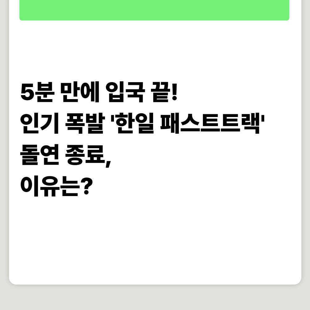 패스트트랙은 특정 조건을 만족하는 양국 국민이 별도로 마련된 창구를 통해 신속하게 입국심사를 받을 수 있는 제도였습니다. 주요 내용은 다음과 같습니다.